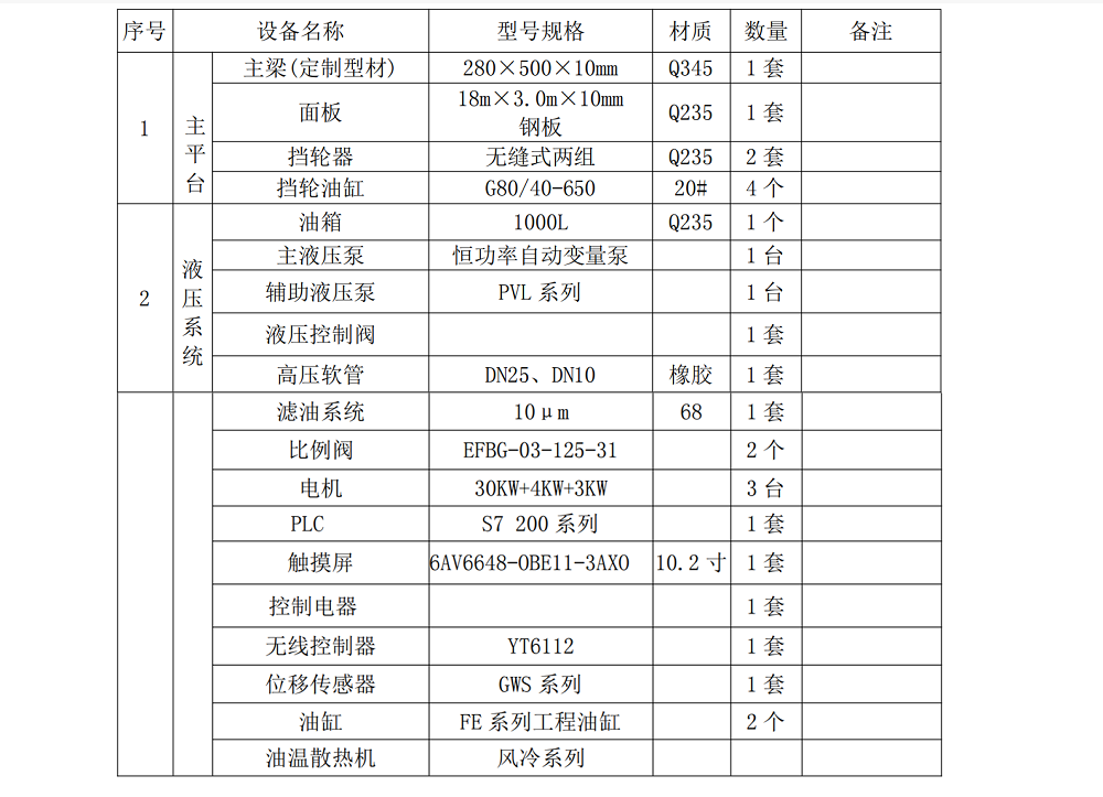 卸料機(液壓翻板機)基本介紹及常規(guī)設(shè)備配置單